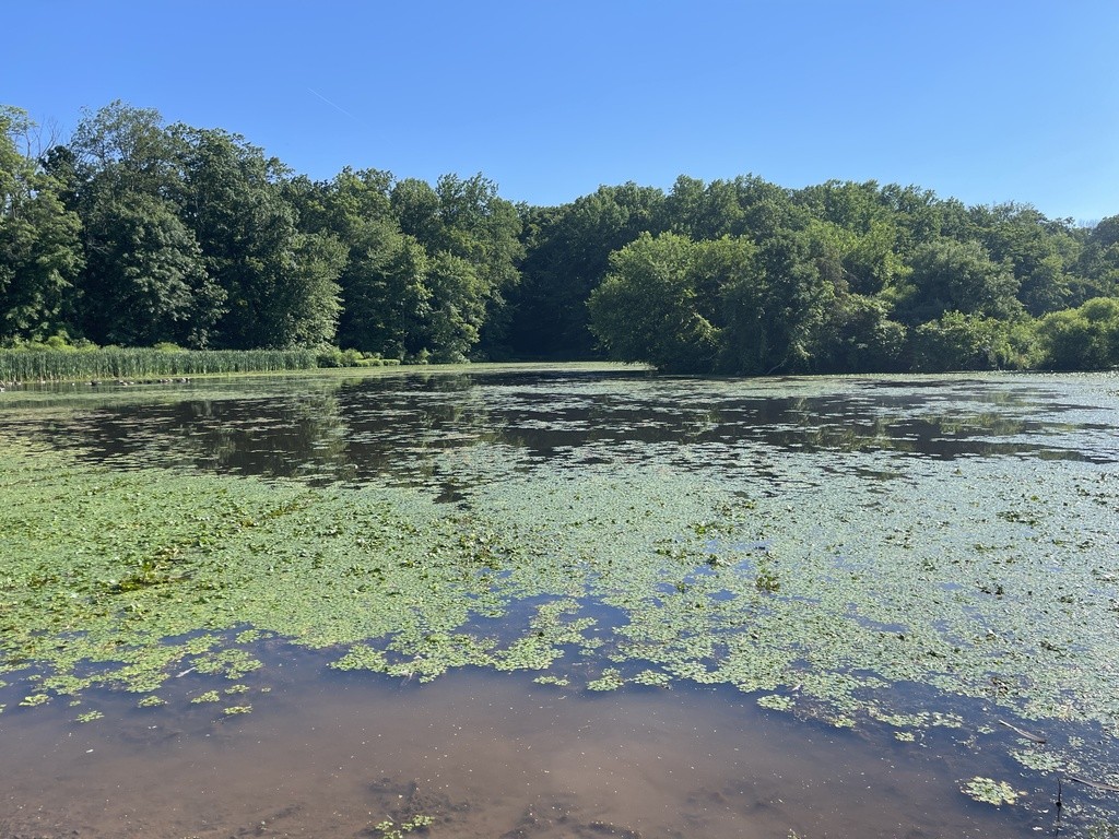 This site is part of the Upper Stony Brook Watershed and has an average water temperature of 60.1 degrees Celsius (poor), with typically clear water and scarce algae. The water here is usually still/slow and has abundant aquatic vegetation, with some coating the surface.