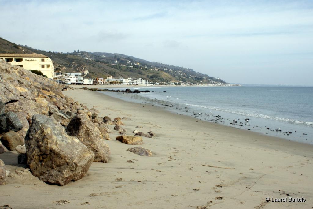 Aka “Billionaires Beach”, is one of the widest and nicest of the eastern Malibu beaches. Carbon Beach extends from Malibu Pier to Carbon Canyon Road, about a mile and a half. There are over 70 private residences lining the beach shoulder to shoulder, including the homes of many major movie stars. There is even a rock called “Deal Makers Rock” where studio heads meet every morning to walk and make their deals. Carbon Beach is a crescent shaped beach tapering to shallow lots at each end, the best lots with the most sand are near the center of the arch. There are only two public accesses to the sand. The first, located at 22706 PCH, is known as the “Zonker Harris” gate after the Doonsbury character. The second access is at 22132 PCH next to David Geffen’s house. By design, on street parking is extremely limited, another option is to park at the Malibu Pier and walk east at low tide. Activities include swimming, surfing, scuba diving, paddle boarding, and catching some rays. No facilities.