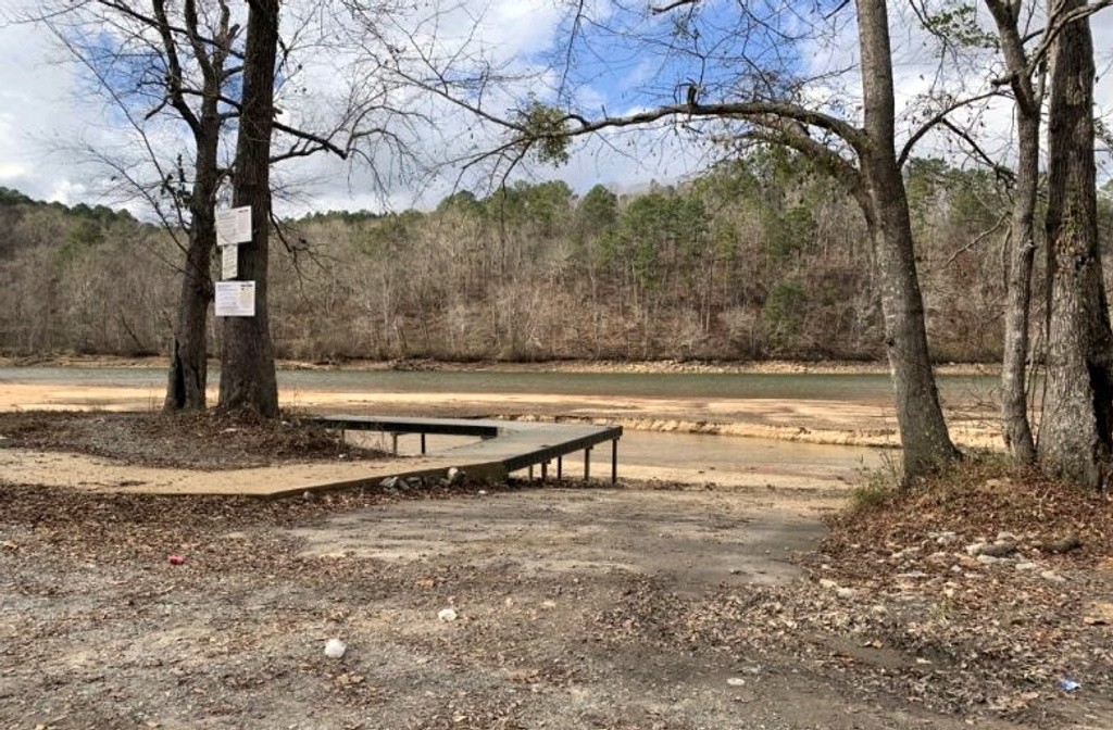 Jaybird Landing marks the transition between the Tallapoosa River and the beginning of Lake Martin. It is a public boat launch at the end of Boone Valley Road in Tallapoosa County. The road is gravel (actually coarse crushed granite) in good condition. Parking is available near the ramp where there is a turn-around area. The location is very remote and lacks developed facilities - no bathrooms. There is a sturdy fishing pier nearby the boat takeout point. Jaybird is a popular take-out point for canoers and kayakers that float down the river. The site is not heavily used by swimmers. Jaybird is shown on the Alabama Scenic River Trail website and various other Tallapoosa County tourism websites.