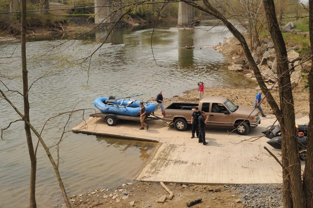 This public boat landing has a concrete boat ramp, porta-potty, and picnic tables. This access is located about a half mile above the confluence of the North and South Forks that form the Main Stem Shenandoah River. Power boaters often use this ramp to access the Main Stem Shenandoah River. The river gets progressively deeper all the way to the Warren Hydro-Electric Dam, 4.2 miles downstream.