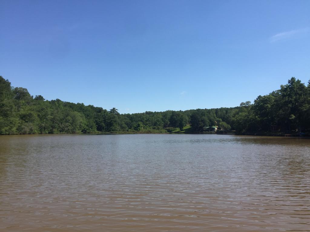 Lake Harding features several islands. One of the most notable is Houston's Island which contains the ruins of an old lake house.