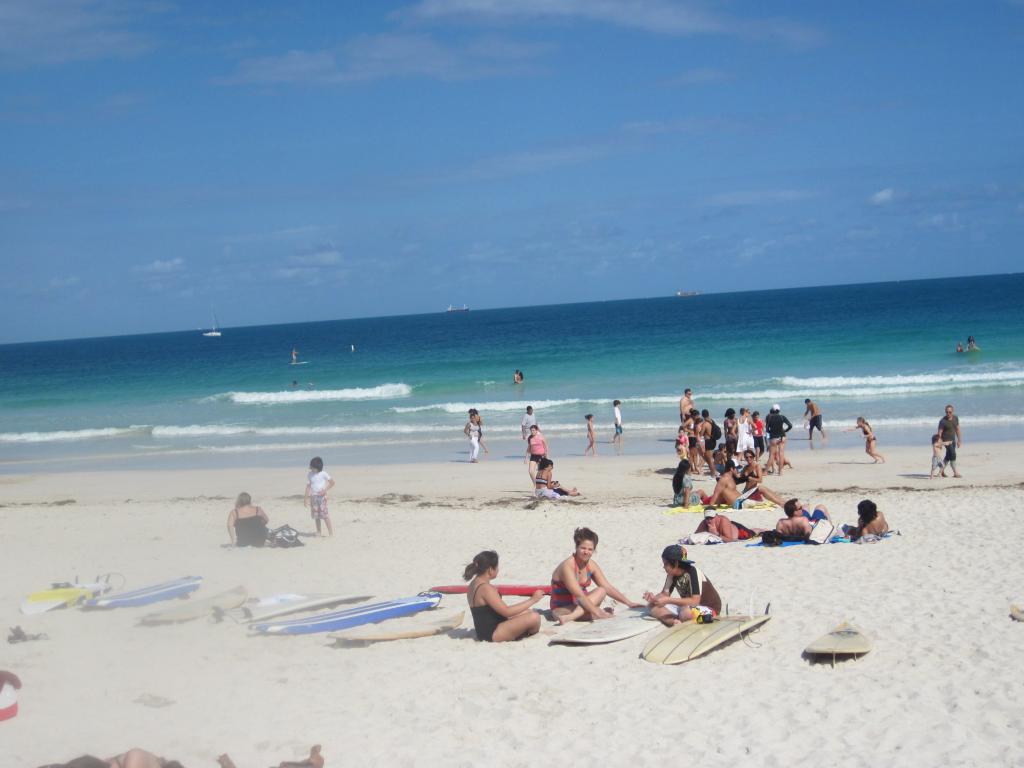 Known to locals as one of the better places to catch some (small) waves, the world famous South Beach in the cool neighborhood of SOFI (south of 5th) in South Miami Beach, is home to some of area's best restaurants, hotels, and bars as well as high priced real estate. One of the most popular beaches in Miami Beach, South Beach is also right next door to the newly renovated South Pointe Park, where Miami Beach proper ends - or begins - depending on which way you are heading. With restroom amenities 20-foot-wide walkways lined with Florida limestone and restored natural sand dunes, covered with grass, children can play in spouting a spouting water exhibit to cool off. Check out an amazing sunset, sunrise or have a meal at one of the local eateries. There are surf shops with equipment rentals close by. Watch cruise ships set sail for an ocean voyage from the adjacent government cut channel, or head up the beach to 5th street and Ocean, where the fantastic art deco hotels line Ocean Drive. Rent a bike and cruise the boardwalk and take in great people watching, beach volleyball and people from all over the world having a blast.